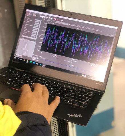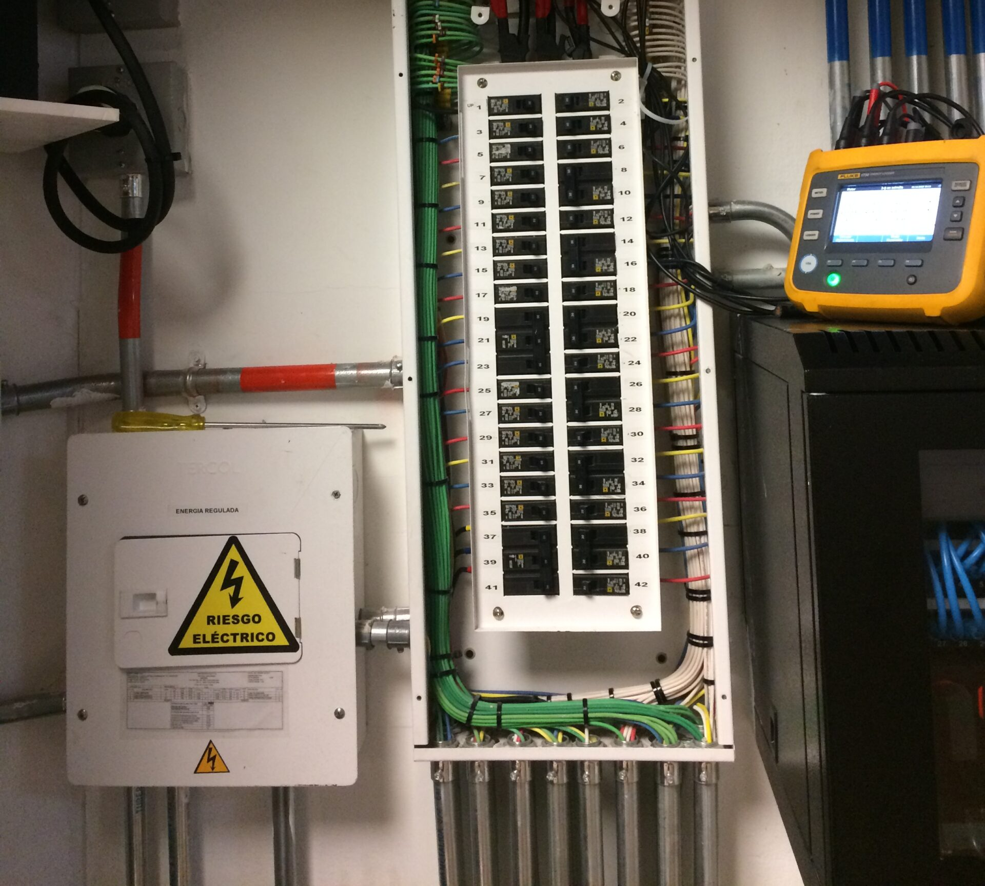 Evaluación del suministro eléctrico que analiza parámetros como voltaje, intensidad de corriente, frecuencia y armónicos, asegurando un suministro confiable y eficiente para los equipos conectados.