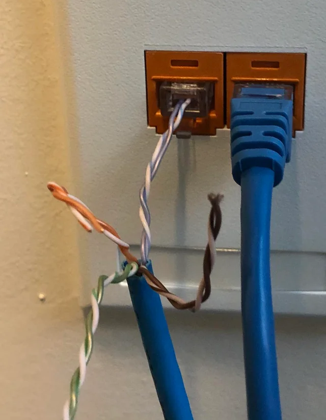 Instalación inadecuada de tomadatas RJ45, como conectores mal colocados o cables mal empalmados.